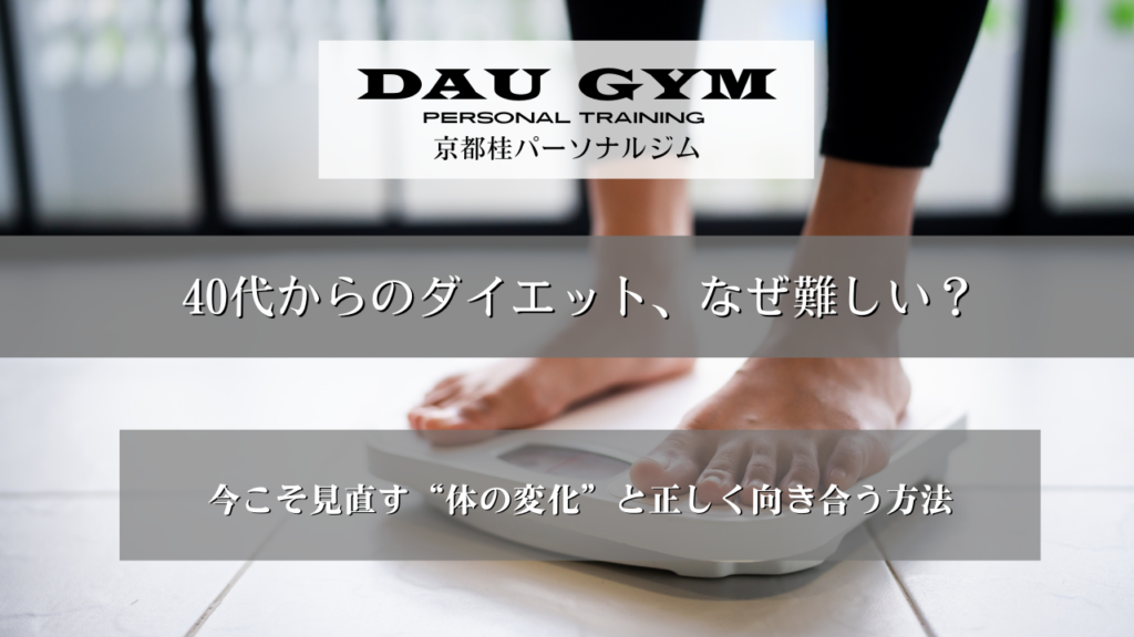 なぜ「昔のダイエット方法」は通用しないのか? 40代になると、20代・30代の頃と同じ食事量や運動量では、なかなか体重が落ちにくくなります。 若い頃に流行った「〇〇だけダイエット」や「短期集中プログラム」は、代謝が高い年 … 続きを読む 40代からのダイエットが難しい理由と、今こそ始めるべきワケ